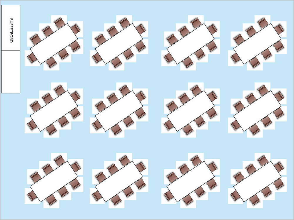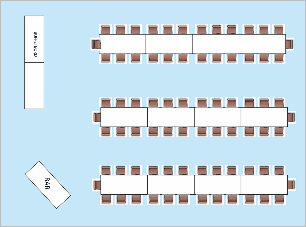 Med denne løsning, har vi valgt at lave 3 langborde med plads til 26 på hvert bord.