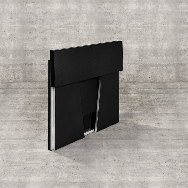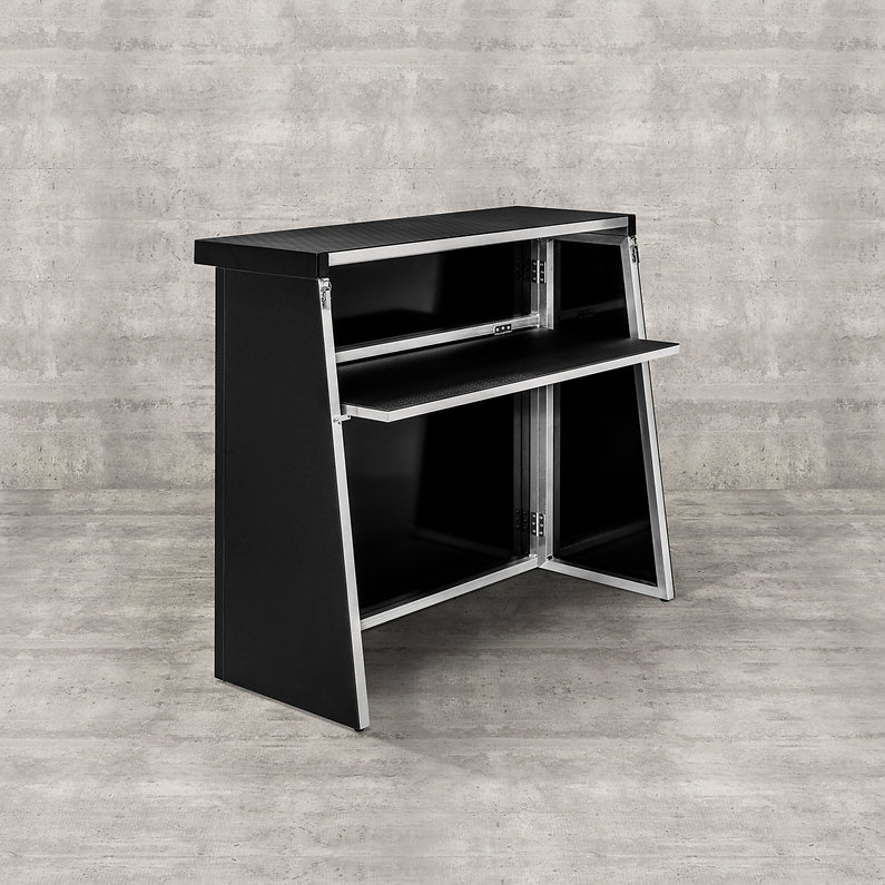 Vores bar kan foldes ned til en brøkdel af sin størrelse – ideel til opbevaring eller transport. Baren er fremstillet i sort ABS og aluminium, en omhyggeligt udvalgt kombination, der sikrer stabilitet, let vægt og nem rengøring. Udover det minimalistiske design, der passer til de fleste miljøer, skaber baren også et fleksibelt og effektivt arbejdsmiljø for den person, der betjener den. The Folding Bar er udviklet til diverse event-opgaver både indendørs og udendørs.